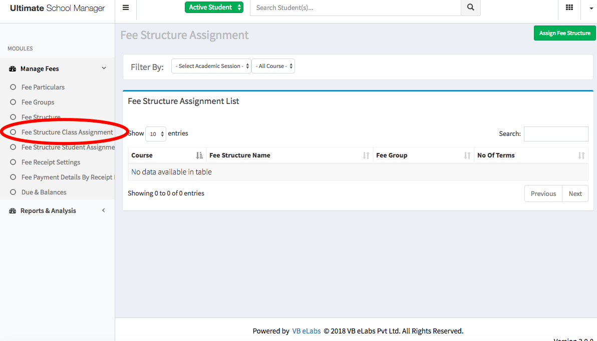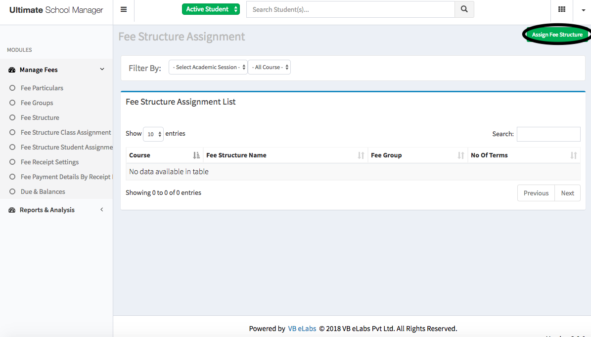 Step 3. Click on Assign Fee Structure option on the top right of the screen.