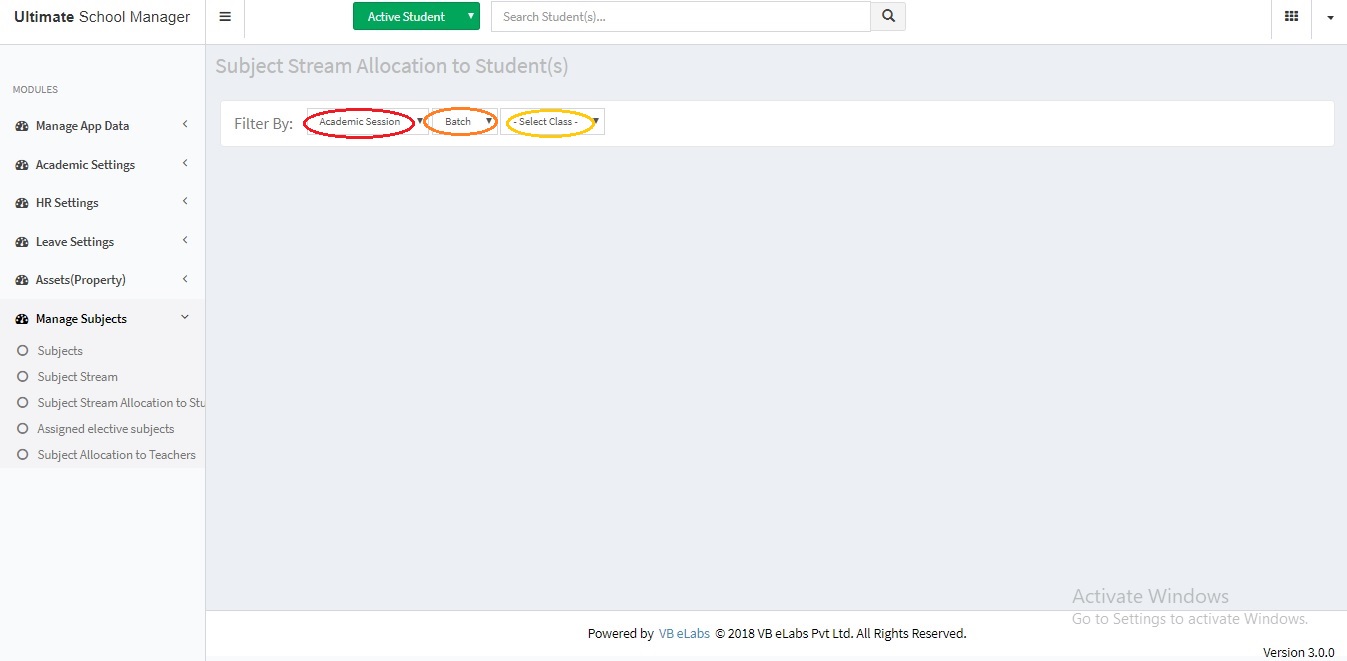 Step 1 : Click on the Subject Stream Allocation to Students option from the menu on the left of the screen.