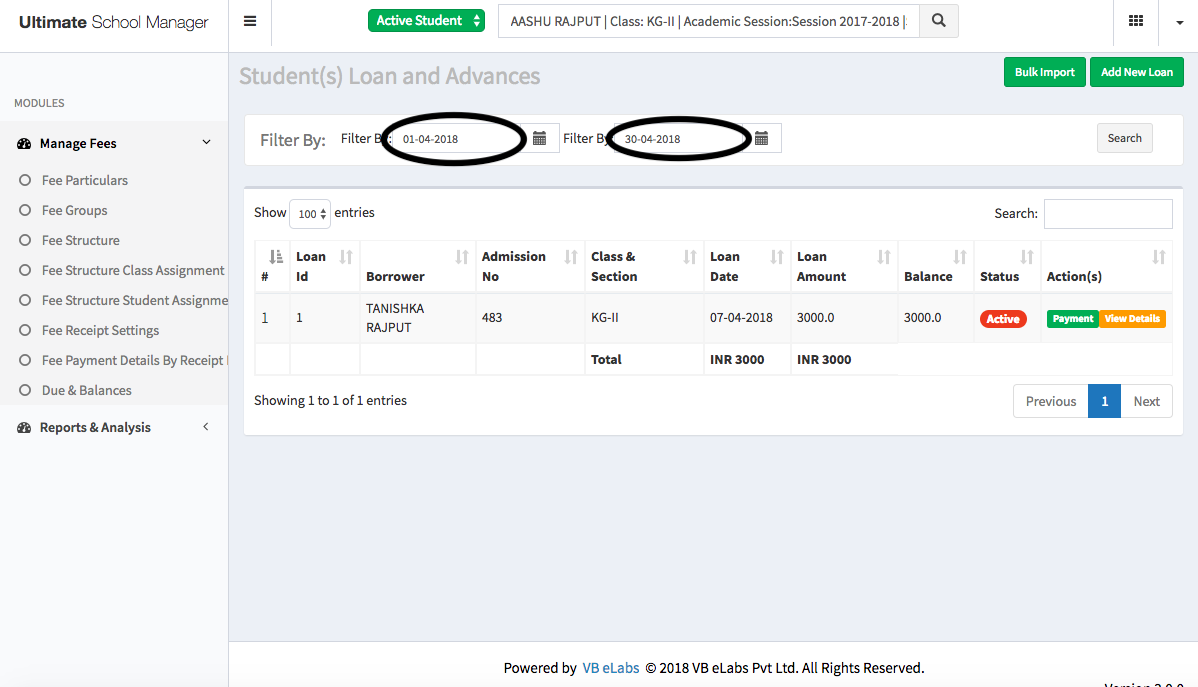 USM allows you to keep track of all the money lent to students via its Fee Management & Collection Module accessible through the Menu Bar on the top right of the screen.