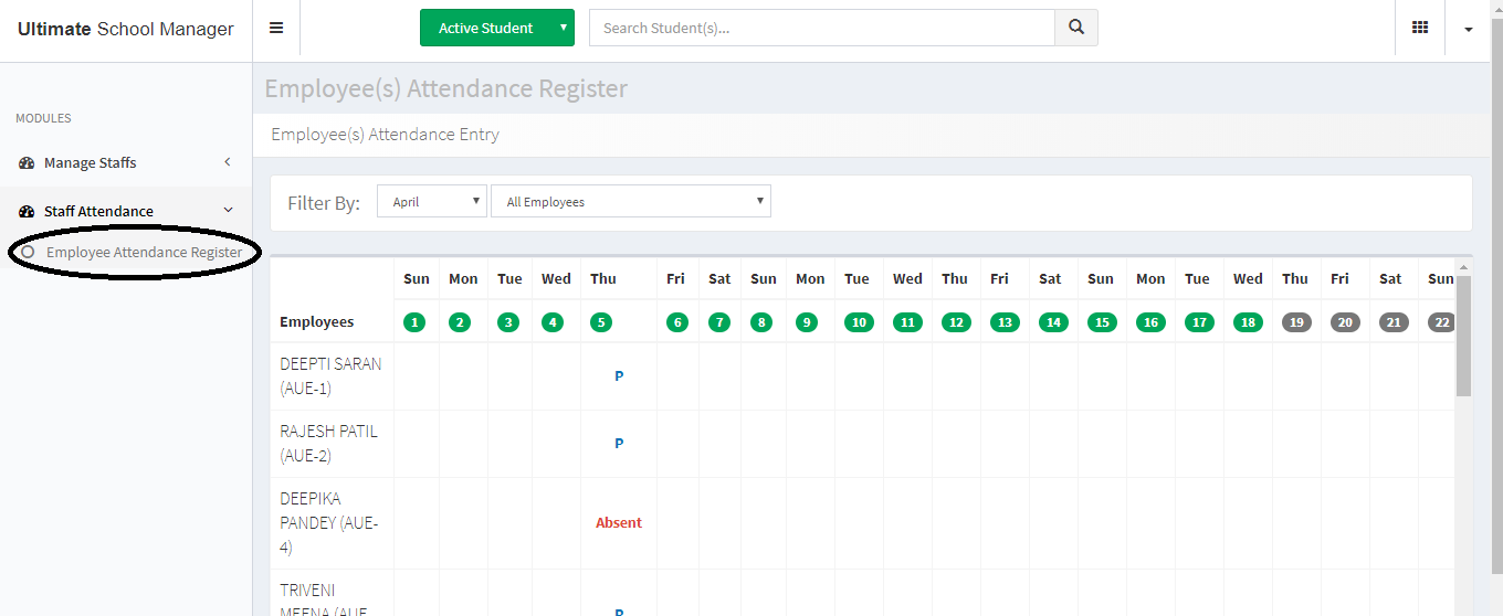 Step 3. Now click on the employee attendance register option present on the left of the screen.