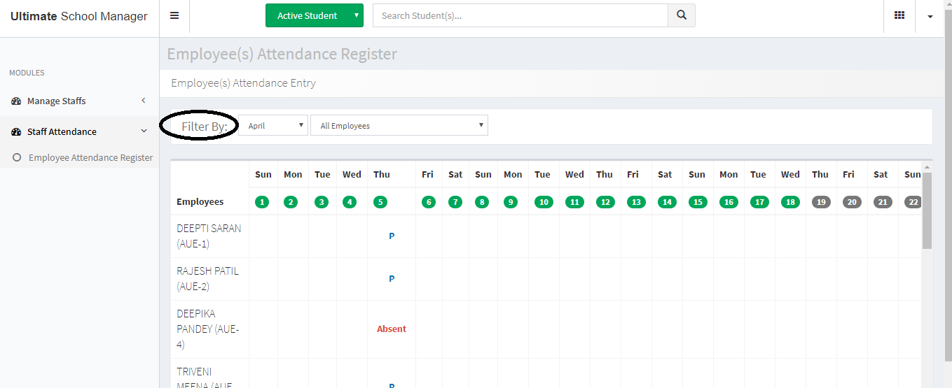 Step 4. Now click on the filter by option and select the desired category i.e. month and name of employee.