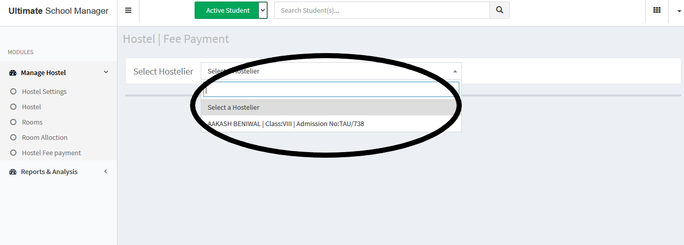Step 2. Click on the Hostel Module under the Menu Bar.