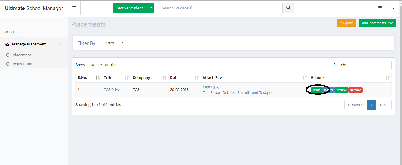 Step 4. A list of all the active drives will be shown. Click on the Invite option on the drive for which you have to send the invitation.