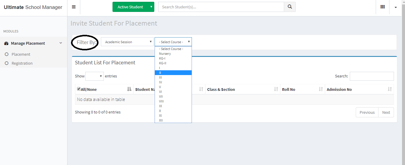 Step 1. Click on the menu bar on the top right of the screen and select the Placement module.